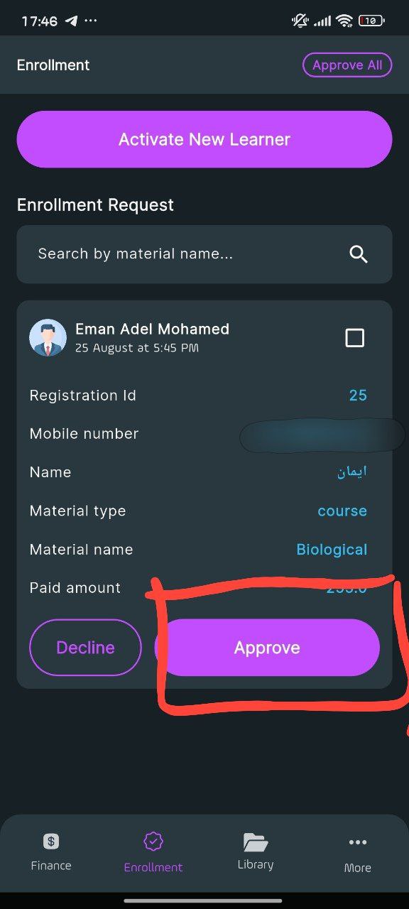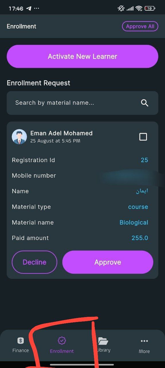 1- افتح التطبيق واضغط على Enrollment من القائمة السفلية