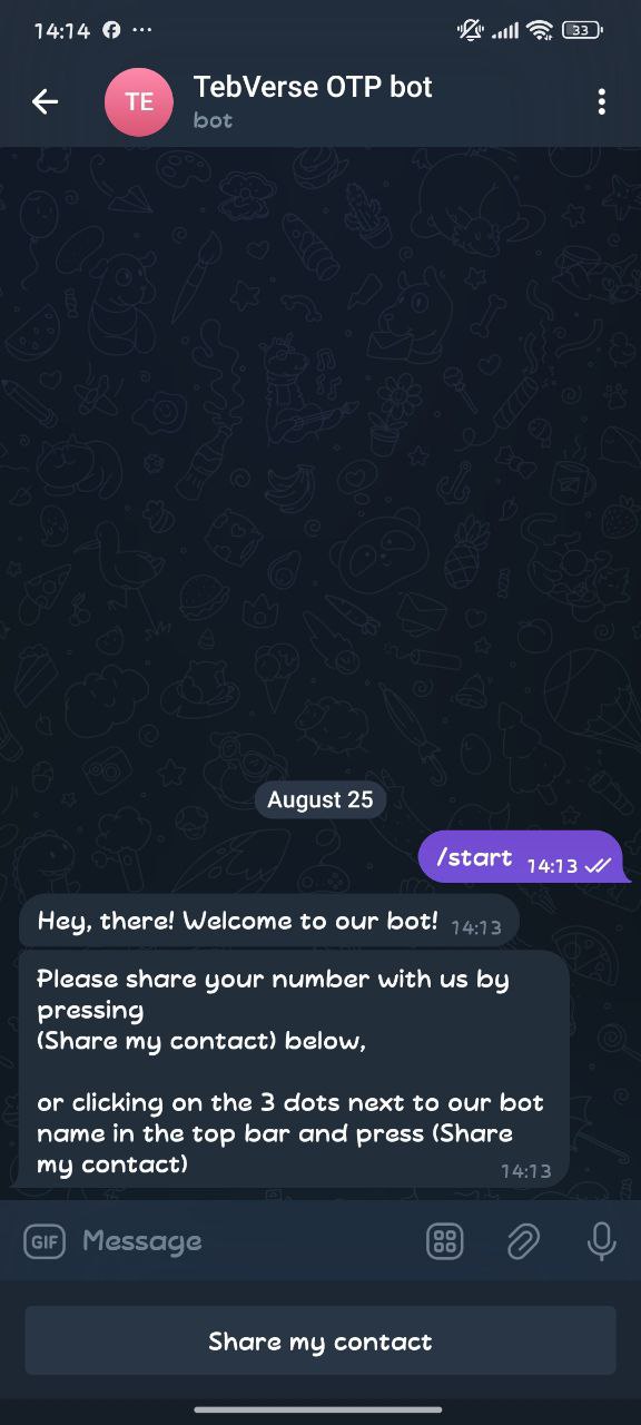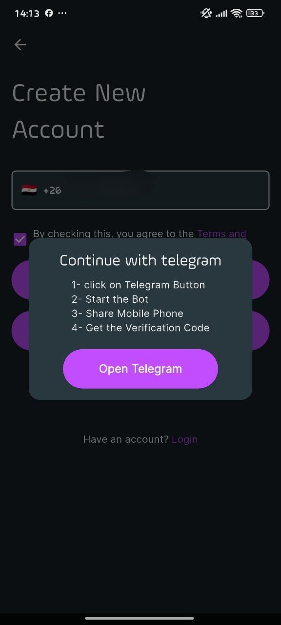 اكتب رقم الموبايل واضغط استمر عبر التليجرام-2