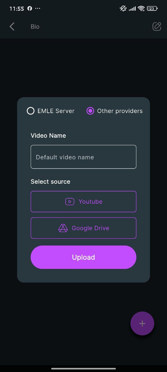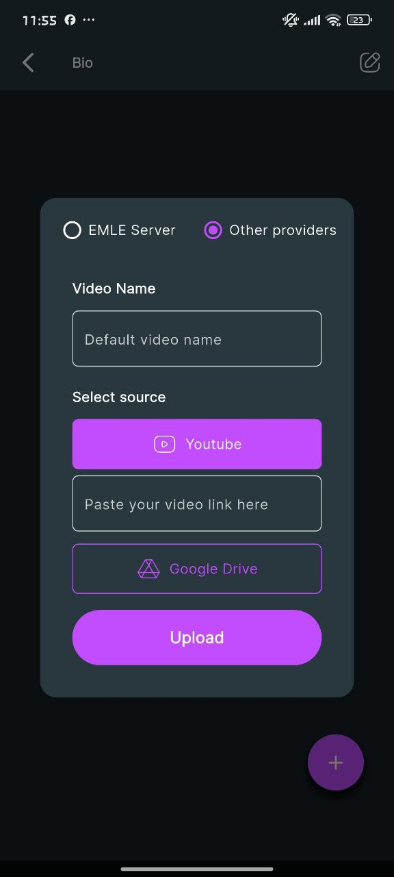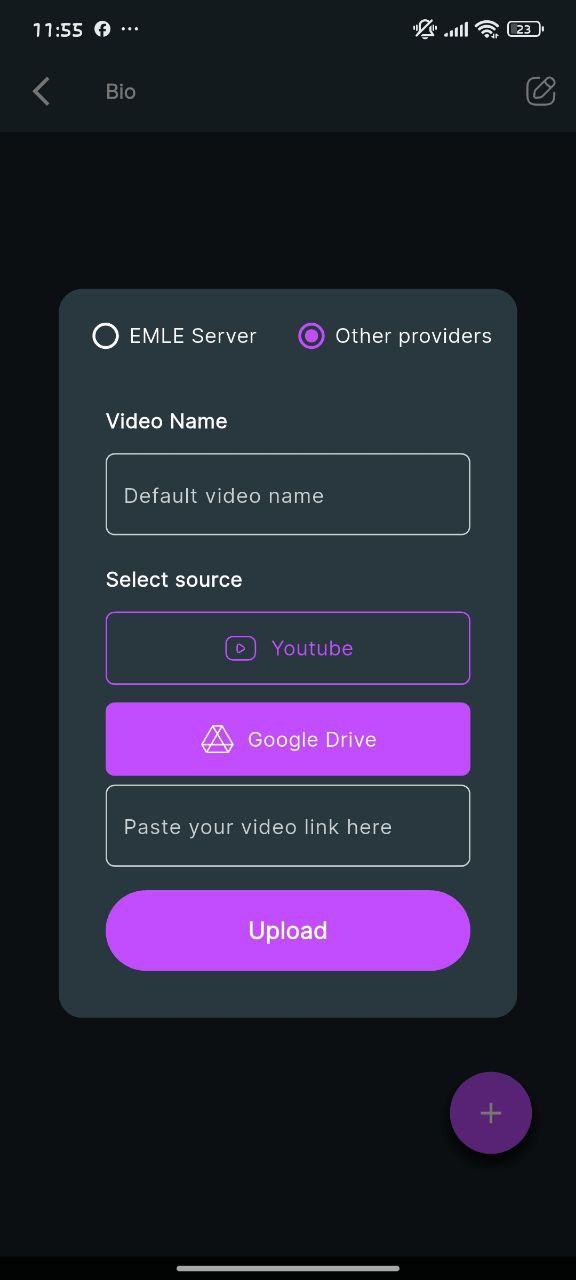 لما تضغط على علامة + هتظهرلك اختيارات (فيديو – PDF – Audio – Quiz). اختار 📹 Video.