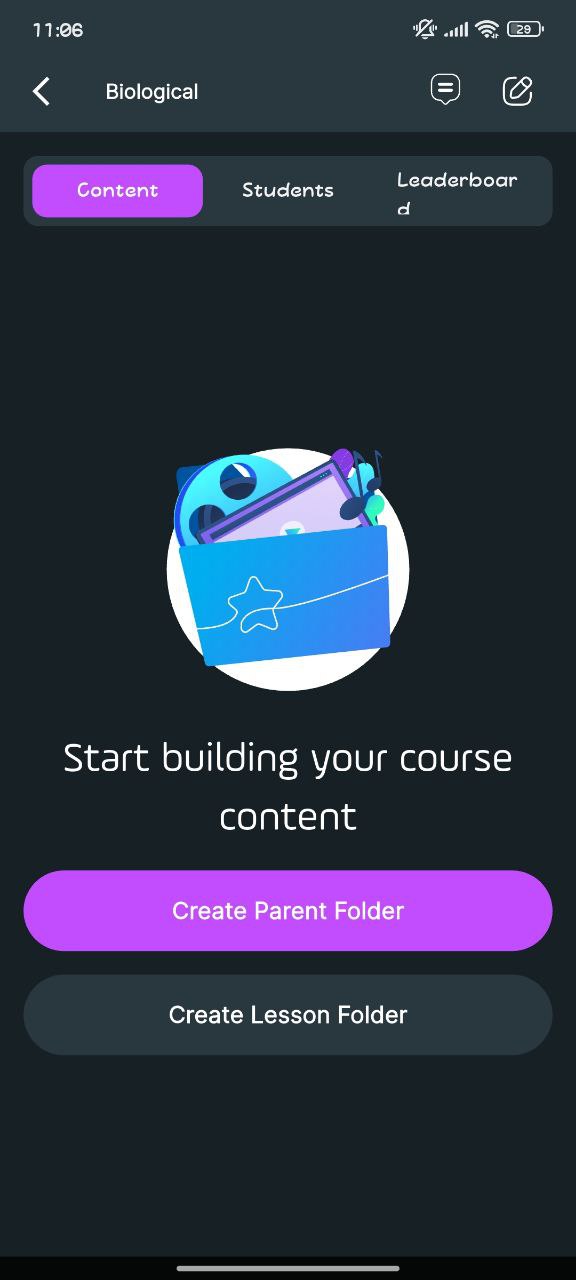 Create Parent Folder → لإنشاء فولدر رئيسي يجمع مجموعة دروس (مثلاً: Chapter 1).