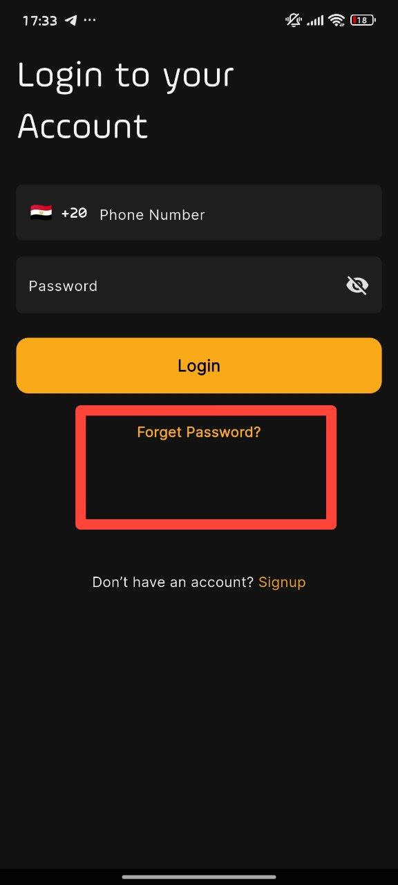 افتح التطبيق من الموبايل واضغط على "نسيت كلمة السر؟" من شاشة تسجيل الدخول.