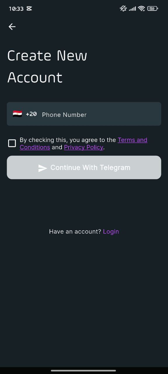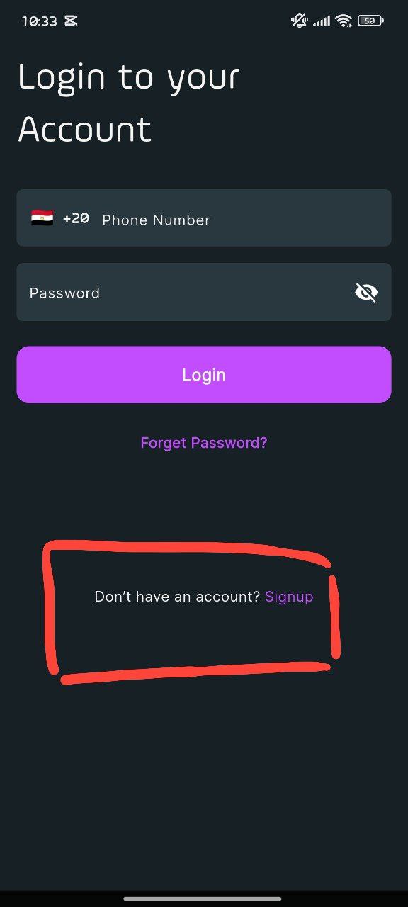 افتح التطبيق من الموبايل واضغط على زر "إنشاء حساب".
