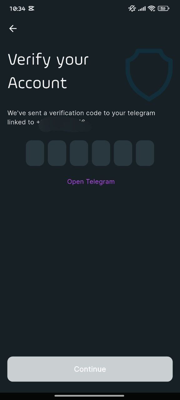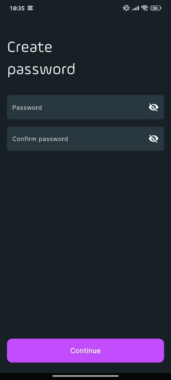 اكتب كلمة المرور وأكدها، ثم اضغط "Continue"